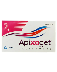 Apixaget 5mg Tablets is a cardiovascular tablet used for management of heart and blood conditions including hypertension, heart failure, arrhythmia, or dyslipidemia. It helps maintain optimal cardiac function and blood pressure. Manufactured by Getz.