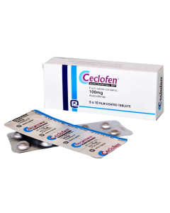 Ceclofin 100mg Tablets is an analgesic/antipyretic tablet used for relief of pain and fever. It reduces inflammatory mediators or acts on pain receptors to provide effective symptomatic relief. Manufactured by MAQ.