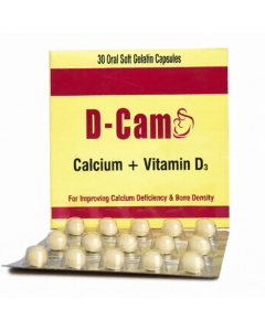D Cam Soft Gel Capsules is a topical gel containing an NSAID or analgesic used for local relief of pain and inflammation in musculoskeletal conditions, arthritis, and sports injuries. It provides targeted relief with minimal systemic side effects. Manufactured by Mass.