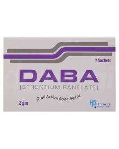 Daba 2mg Sachets is a musculoskeletal sachet used for relief of pain, inflammation, and stiffness associated with arthritis, muscle injuries, or joint disorders. Manufactured by Hiranis.