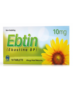 Ebtin 10mg Tablets 10s is a respiratory tablet used for treatment of asthma, COPD, bronchitis, or other respiratory conditions. It helps improve airflow, reduce inflammation, or clear mucus from the airways. Manufactured by Nabiqasim.