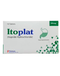 Itoplat 50mg Tablets is a gastrointestinal tablet used for treatment of digestive conditions including acid reflux, peptic ulcer, nausea, constipation, or inflammatory bowel disease. It helps restore normal gastrointestinal function. Manufactured by Platinum.