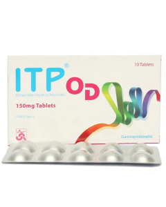 Itp Od 150mg Tablets is a gastrointestinal tablet used for treatment of digestive conditions including acid reflux, peptic ulcer, nausea, constipation, or inflammatory bowel disease. It helps restore normal gastrointestinal function. Manufactured by Sami.