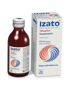 Izato Suspension 60ml is a gastrointestinal suspension used for treatment of digestive conditions including acid reflux, peptic ulcer, nausea, constipation, or inflammatory bowel disease. It helps restore normal gastrointestinal function. Manufactured by Sami.