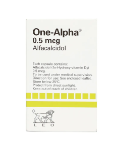 One Alpha 0.5mcg Capsules is a musculoskeletal capsule used for relief of pain, inflammation, and stiffness associated with arthritis, muscle injuries, or joint disorders. Manufactured by Leo.