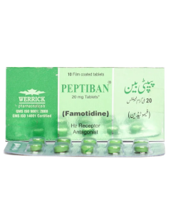 Peptiban 20mg Tablets is a gastrointestinal tablet used for treatment of digestive conditions including acid reflux, peptic ulcer, nausea, constipation, or inflammatory bowel disease. It helps restore normal gastrointestinal function. Manufactured by Werrick.
