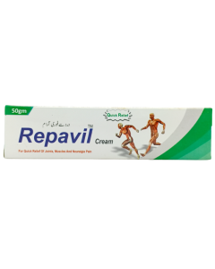 Repavil Cream 50g is a topical cream containing an NSAID or analgesic used for local relief of pain and inflammation in musculoskeletal conditions, arthritis, and sports injuries. It provides targeted relief with minimal systemic side effects. Manufactured by Saqi.
