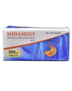 Sodamint 300mg Tablets is a gastrointestinal tablet used for treatment of digestive conditions including acid reflux, peptic ulcer, nausea, constipation, or inflammatory bowel disease. It helps restore normal gastrointestinal function. Manufactured by Karachi Pharma.
