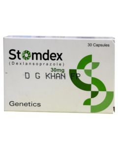 Stomdex 30mg Capsules is a gastrointestinal capsule used for treatment of digestive conditions including acid reflux, peptic ulcer, nausea, constipation, or inflammatory bowel disease. It helps restore normal gastrointestinal function. Manufactured by Genetics.