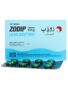 Zodip 5mg Tablets is a cardiovascular tablet used for management of heart and blood conditions including hypertension, heart failure, arrhythmia, or dyslipidemia. It helps maintain optimal cardiac function and blood pressure. Manufactured by Zafa.